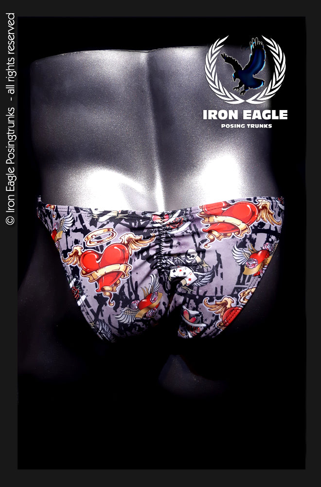 Iron Eagle Premier - The Premier Pro cut reveals the ultimate V taper, hits extra high up on your hips revealing those deep quad cuts. A super narrow cut back with a scrunch elastic to pronounce your glutes even more and reveal glute striations, pouch type front with centre seam and ultra thin side straps. Fully lined on the front. Recommended for advanced & pro competitors.Iron Eagle Flex - The Flex cut has a more conservative cut for athletes who require a more conservative look with a bit more cover on front and back. The Flex cut is fully lined on the front, has a 3/4 cut back with scrunch elastic to pronounce your glutes. It has a centre seam on the front and sleek side straps for a comfortable fit. Recommended for novice & intermediate competitors.