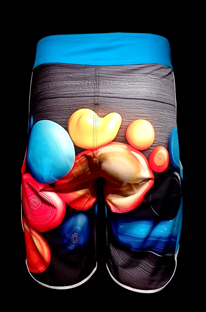 Colour: Blue, White & Red with orb design on slate wood background