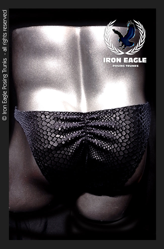 Iron Eagle Posing Trunks are fully lined on the front with our super soft Comfort+ lining and produced using the highest grade, 4 way stretch, velvet, snakeskin fabrics for ultimate fit, comfort and durability.